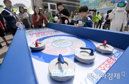 11일 서울 광화문광장에서 식품안전의날(5월14일)을 앞두고 열린 식품안전박람회에서 방문객들이 안전관리인증 홍보 이벤트에 참여하고 있다./김현민 기자 kimhyun81@