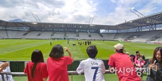 이날 경기에는 티롤, 잘츠부르크, 비엔나 등지에서 한국 교민들이 총출동해 우리 대표 선수들을 응원했다. 강 회장은 "한달 전 부터 연락을 받고 선수들과 경기장에 들어설 에스코트 아이들을 모집하는 등 바쁘게 움직였다"고 했다. 이어 "한국에서 살때와는 확실히 느낌이 다르다. 나 같은 경우도 회사에 휴가를 내고 응원을 왔다"고 했다.