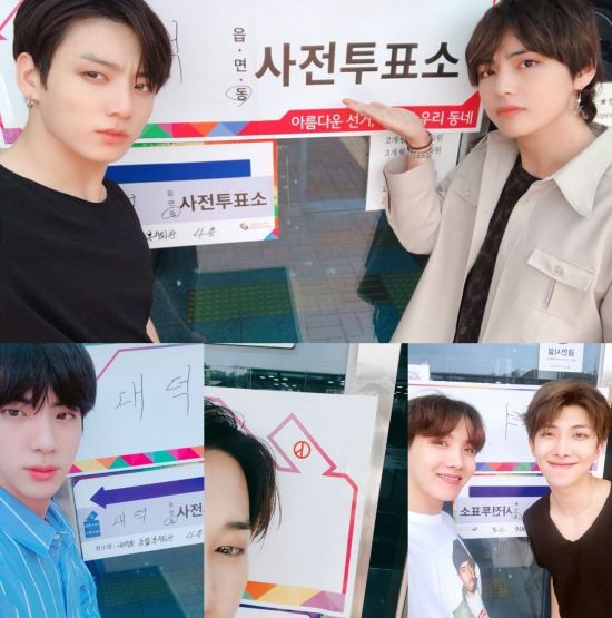 이와 관련 지난 9일 그룹 방탄소년단 RM과 제이홉은 공식 트위터에 “사전투표 했습니다”라는 글과 함께 투표 인증샷을 게재했다. 두 멤버의 인증샷에 이어 나머지 멤버들인 진, 슈가, 지민, 뷔, 정국 역시 “우리도 함 #사전투표인증”이라며 사전 투표를 했다고 밝혔다.