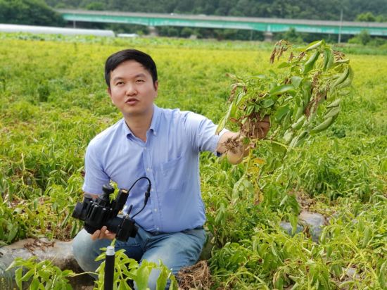뙤약볕이 내리쬐는 경북 구미시 선산의 1000평 남짓한 노지(맨땅)에 조성된 감자 농장. 채한별 스마프 대표이사와 함께 감자 줄기를 관찰해봤다. 겉으로 보기엔 여느 감자밭과 다를 바 없는 이 곳엔 최첨단 비밀이 숨겨져있다. SK텔레콤이 구축한 IoT 네트워크 '로라(LoRa)'와 IoT 플랫폼 '씽플러그(Thingplug)'가 그것이다. 스타트업 스마프는 여기에 자체 개발한 관수(灌水) 솔루션을 적용했다. 로라망이 연결된 관수 밸브를 스마트폰으로 제어할 수 있는 시스템이다.