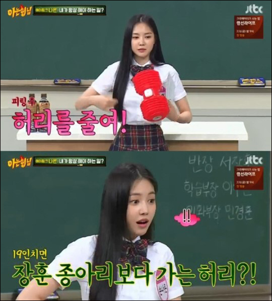 이날 방송에서 손나은은 ‘내가 항상 해야 하는 일’을 문제로 냈다. 이어 공개된 정답은 ‘허리 사이즈 줄이기’였다.