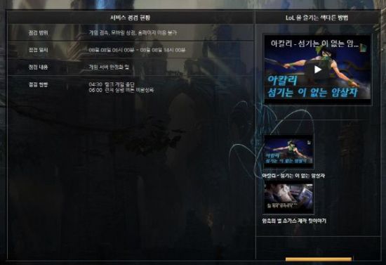 인기 온라인 게임 리그오브레전드(이하 롤)가 8일 오전 점검을 진행한다.