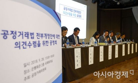 28일 서울 중구 은행회관에서 열린 '독점규제 및 공정거래에 관란 법률' 전부개정안 공청회에서 패널들이 토론을 하고 있다./강진형 기자aymsdream@