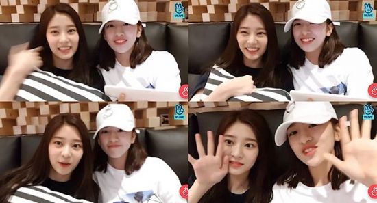 걸그룹 아이즈원(IZ*ONE) 멤버 안유진·김민주가 V라이브를 통해 근황을 전했다.