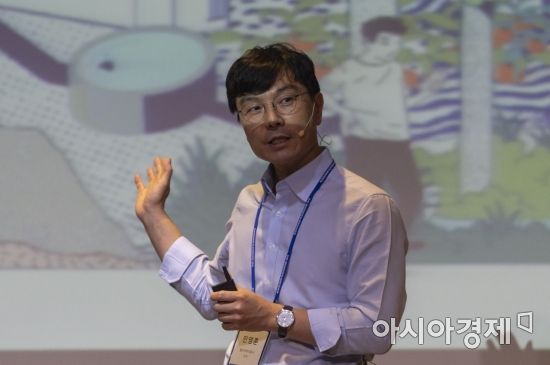 16일 서울 여의도 전경련 회관에서 아시아경제 주최로 열린 '2018 블록체인 플레이 그라운드'에서 민영훈 열두척주식회사 이사가 '블록체인, 혁신을 말하다' 라는 주제로 강연을 하고 있다. '2018 블록체인 플레이 그라운드'는 블록체인 생태계 발전을 도모하고자 '소통', '매칭', '만남'을 주제로 벤처캐피탈, 블록체인 프로젝트 기업, 예비창업자 등이 자신의 비전을 발표하고 각각의 아이디어를 공유하면서 새로운 가치를 창출해가는 '축제의 장'이다./윤동주 기자 doso7@