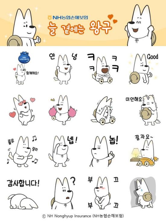 왕구 이모티콘은 지난 5월에 실시된 농협손보 캐릭터 이모티콘 공모전 대상 수상 작품을 활용한 것이다. 기쁨·슬픔 등 16가지 감정표현을 움직이는 이모티콘으로 제작됐다.