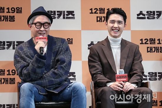 12일 오전 서울 강남구 영동대로 코엑스아티움 5층 SMTOWN 씨어터에서 영화 '스윙키즈' 제작보고회가 열렸다. 이 자리에는 배우 도경수, 박혜수, 오정세, 강형철 감독이 참석했다.