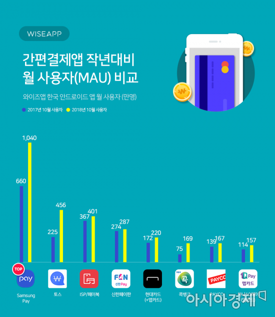 삼성페이·토스 순…삼성페이 MAU 1040만 1위