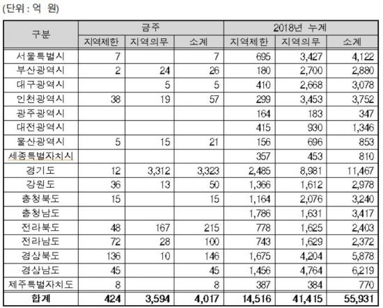 지역별지역제한·지역의무공동도급 현황자료. 조달청 제공
