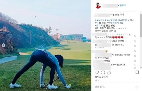 공개된 사진 속 양한나는 골프장에서 스윙을 위해 공을 고정시키고 있다. 우월한 신체 조건이 만들어낸 독특한 자세가 보는이의 웃음을 자아낸다.