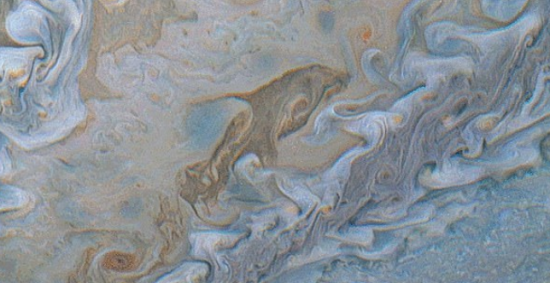 3일(현지시간) NASA는 목성 궤도를 도는 탐사선 주노가 지구로 보내온 사진을 공개했다. 목성 위로 돌고래 모양의 구름이 포착됐는데, 지난 10월 29일 오후 5시 26분에서 46분 사이에 목성 남반구에서 촬영됐다. 촬영된 사진은 시민 과학자 브라이언 스와이프트와 션 도란의 이미지 작업(재가공)을 거쳤다.