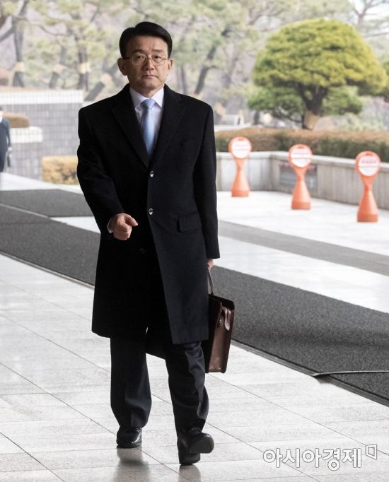 세월호 참사 당시 유가족에 대한 불법 사찰을 지시했다는 의혹을 받는 이재수 전 국군기무사령부가 27일 피의자 신분으로 중앙지검에 출석하고 있다./윤동주 기자 doso7@