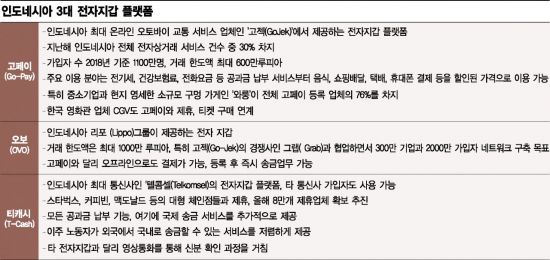 [아시아경제 자카르타 최수진 객원기자] 내년에 인도네시아 진출을 원하는 해외 투자자들은 인도네시아의 금융 현황 파악과 더불어 효과적인 '전자 지갑(E-Wallet)' 플랫폼과의 제휴를 모색하는 것이 필요해 보인다. 전자 지갑은 인도네시아 기업과 일반 국민들의 생활 속 깊숙이 파고 들어와 있어 '금융 악조건'과 '인터넷 강국'이라는 환경이 만들어낸 인도네시아 경제의 돌파구가 되고 있다.
