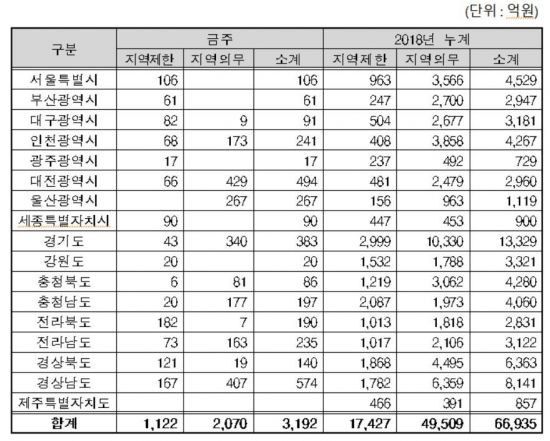 지역별 지역제한·지역의무공동도급 현황자료. 조달청 제공