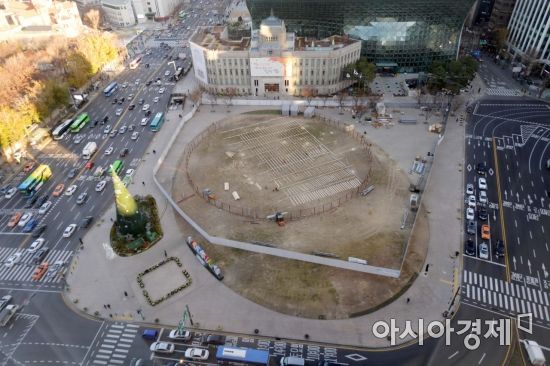 서울광장에 설치 중인 스케이트장. 사진은 지난달 설치중인 모습을 촬영한 것이다. [사진=문호남 기자]