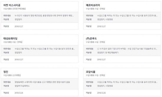5곳 영업정지 처분, 1곳은 영업허가ㆍ등록 아예 취소