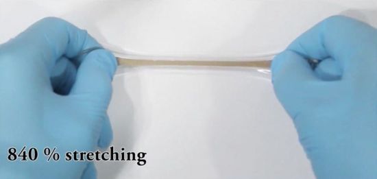 전기가 통하는 고무 8배 이상 늘어나도 전기는 이상없이 흐릅니다. [사진=기초과학연구원 홈페이지]