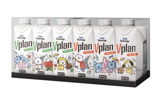 ‘썬업 브이플랜·BT21 캐릭터 에디션’은 썬업이 라인프렌즈의 글로벌 밀레니얼 인기 캐릭터 ‘BT21’과 협업해 선보인 제품으로, 썬업 브이플랜 포장 용기에 BT21 캐릭터들의 다양한 모습들을 담아 총 6가지의 디자인으로 선보였다.