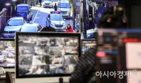 8일 서울 마포구 CCTV통합관제센터에서 열린 '마포구 CCTV통합관제센터 개소식'에서 관내 경찰 및 관제요원들이 CCTV운영 시연을 선보이고 있다./강진형 기자aymsdream@