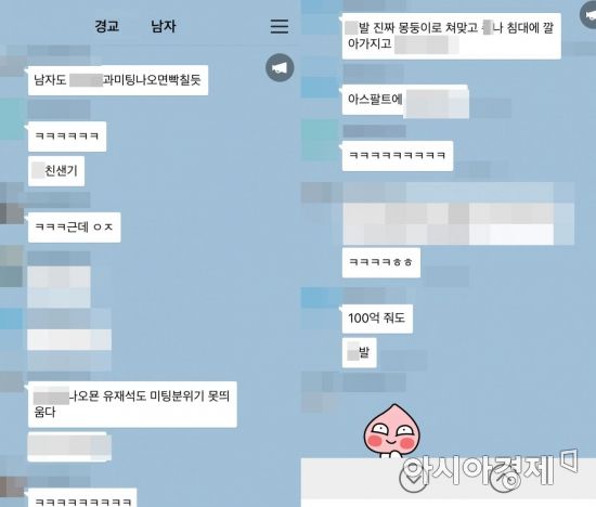 ‘아시아경제’가 단독으로 입수한 경인교대 일부 남학생들 카카오톡 단체 대화방. 여러 학번으로 구성된 남학생들은 이 방에서 여학생은 물론 여교수와 특정 학과까지 희롱했다. 사진=한승곤 기자 hsg@asiae.co.kr