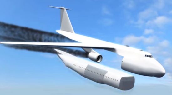 탈부착식 캡슐 비행기가 비상시 승객석을 분리하는 모습. [사진=유튜브 화면캡처]