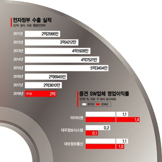 [아시아경제 이민우 기자] 소프트웨어(SW)산업진흥법으로 대기업의 공공SW분야 참여를 제한한지 7년이 됐다. 당초 계획대로라면 대기업은 새로운 먹거리를 찾고 중견ㆍ중소 시스템통합(SI) 업체들의 사정은 크게 좋아져야 하는데 상황은 신통치 않다. 우리 정부가 자랑하던 전자정부 시스템 수출액은 급격히 움츠러들었다. 대기업 대신 뛰어든 중견ㆍ중소기업들의 경우 매출은 늘었지만 영업이익률은 1%를 벗어나지 못하고 있다. 제도 시행 7년에 대한 냉정한 평가와 연구가 필요하다는 지적이 나오는 이유다.