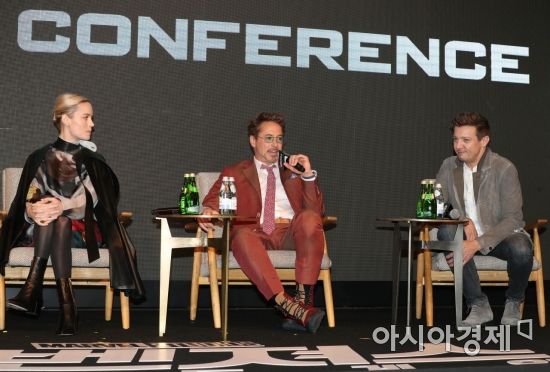 영화 '어벤져스: 엔드게임' 아시아 프레스 컨퍼런스가 15일 서울 종로구 포시즌스호텔에서 열렸다. 아이언맨 역할을 맡은 배우 로버트 다우니 주니어가 취재진 앞에서 포즈를 취하고 있다. /문호남 기자 munonam@