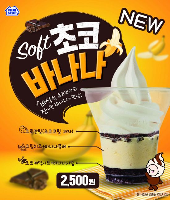 미니스톱은 바나나의 맛과 달콤한 초콜릿를 소프트크림과 조합해 시원한 디저트를 고객들이 맛볼 수 있도록 소프트 초코바나나를 기획했다. 바나나의 맛과 식감을 풍부하게 살리기 위해 바나나퓨레와 초콜릿 토핑과자를 넣어 부드러움과 바삭함을 동시에 느낄 수 있는 점이 특징이다.