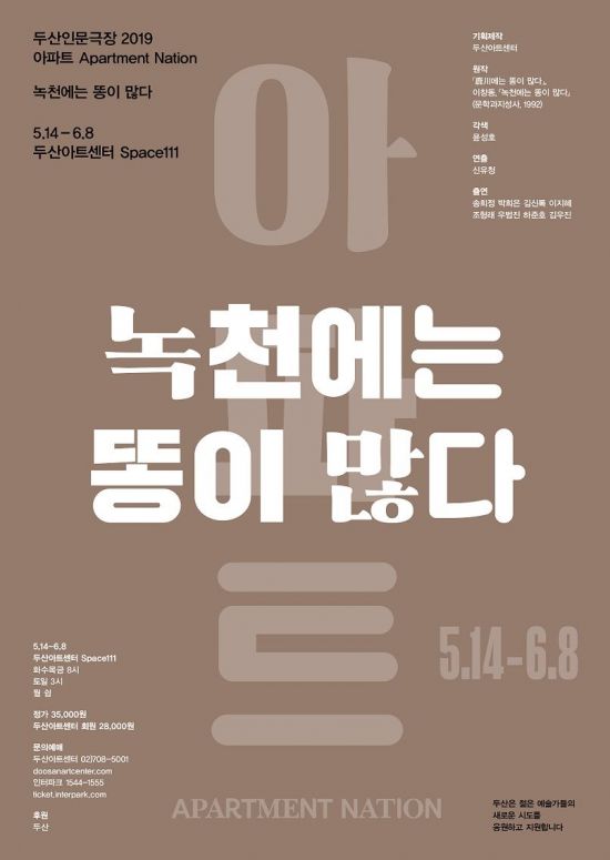 연극 '녹천에는 똥이 많다' 티켓은 두산아트센터 홈페이지와 인터파크에서 예매할 수 있다.