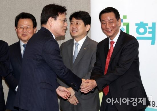 왼쪽 두번째에서부터 오른쪽으로 최종구 금융위원장, 유광열 금융감독원 수석부원장, 권용원 금융투자협회장./문호남 기자 munonam@