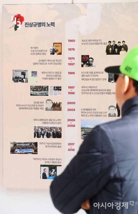 전시회는 ▲1948년 이승만 대통령의 계엄령 서명과 1949년 유시의 국무회의록 ▲김대중 대통령(후보)의 4·3관련 발언과 4·3특별법 공포 선언 ▲노무현 대통령 후보의 4·3현장 첫 방문 및 대통령으로서 4·3 위령제 참석과 발언 ▲이명박 후보의 4·3평화공원 헌화 및 방명 ▲박근혜 대통령(후보)의 유세 발언과 4·3평화공원 헌화 ▲문재인 대통령(노무현재단 이사장, 예비후보)의 4·3 현장 방문 등의 과정에서 생산된 문서와 사진, 발언, 영상 등을 통해 4·3의 진실을 알리기 위해 기획됐다.