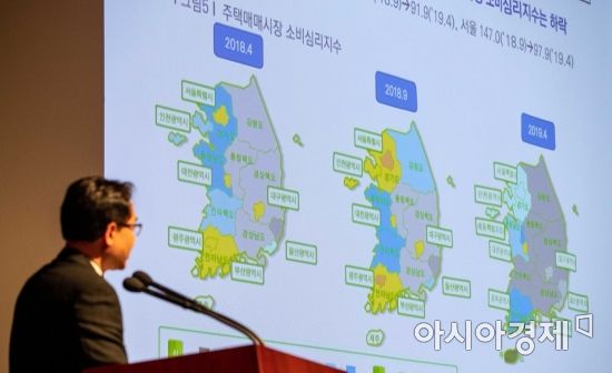 박찬규 국토연구원 부동산시장연구센터장이 28일 서울 중구 프레스센터에서 열린 '문재인 정부 주택정책 2년의 성과와 과제 세미나'에서 '주택시장 안정화 대책 이후 주택시장 변화 및 향후 정책방향' 이란 주제로 발표하고 있다./강진형 기자aymsdream@