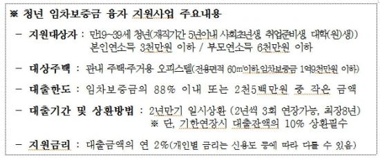 서울시 청년임차보증금 지원사업은 만 19~39세 청년들이 주택 및 주거용 오피스텔에 입주하기 위해 계약을 체결할 때 소득 기준 등 자격에 해당할 경우 시가 융자신청 대상자로 선정해 추천서를 발급해주고 이자의 일부를 대납해주는 사업이다. 2017년 2월부터 전국 최초로 운영했으며 지금까지 선정 인원은 353명, 대출추천금액은 약 45억원이다.