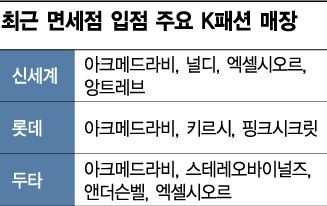 한편 면세점뿐만 아니라 백화점도 K패션 브랜드의 인기에 발빠르게 대응하고 있다. 롯데백화점은 이달 14일까지 소공동 본점에서 아크메드라비 팝업스토어를 선보인다. K-스트리트 패션 브랜드들이 포함된 롯데백화점 스트리트 패션 상품군 매출은 지난 1~5월 동안 약 15% 신장하기도 했다.