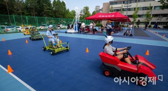 12일 서울 성북구 고려대 자연계캠퍼스에서 고려대 미래자동차 해커톤에 참가한 학생들이 직접 만든 전기자동차 운행 시연 하고 있다./강진형 기자aymsdream@