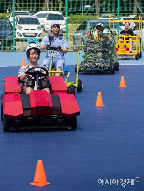 12일 서울 성북구 고려대 자연계캠퍼스에서 고려대 미래자동차 해커톤에 참가한 학생들이 직접 만든 전기자동차 운행 시연 하고 있다./강진형 기자aymsdream@