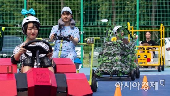 12일 서울 성북구 고려대 자연계캠퍼스에서 고려대 미래자동차 해커톤에 참가한 학생들이 직접 만든 전기자동차 운행 시연 하고 있다./강진형 기자aymsdream@