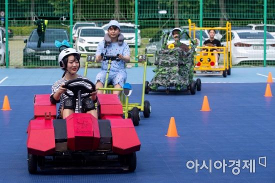 12일 서울 성북구 고려대 자연계캠퍼스에서 고려대 미래자동차 해커톤에 참가한 학생들이 직접 만든 전기자동차 운행 시연 하고 있다./강진형 기자aymsdream@