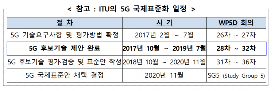 우리나라가 제안한 기술은 국제적으로 단일화된 3GPP 승인 기술을 기반으로 지난 4월 세계 최초 5G 상용화 시 사용한 무선접속기술과 국내 5G 주파수 대역(3.5GHz, 28GHz) 기술 등이다. 우리나라는 지난해 1월 세계 최초로 5G 후보기술을 ITU에 제안한 이후 이번까지 총 3차례 제안을 통해 5G 국제 표준화를 선도해 오고 있다.