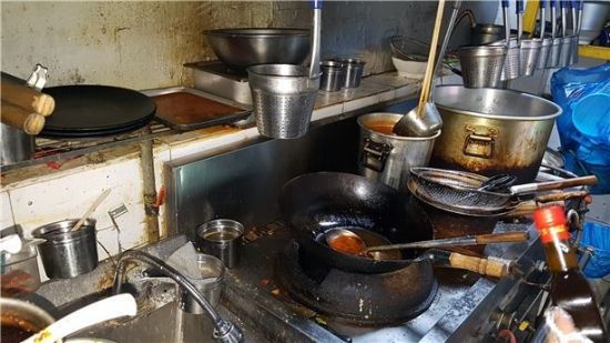 식약처가 적발한 마라탕 음식전문점의 주방. 기름때가 찌들어 있다. 사진=식약처 제공
