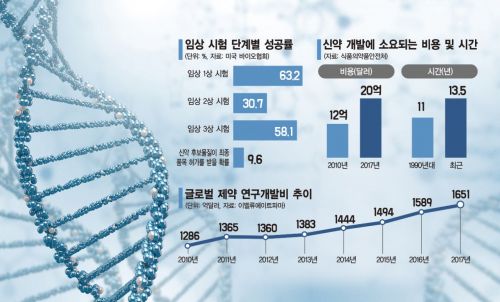 ◆업계 "네거티브 규제"= 국내 제약·바이오기업이 실패를 딛고 글로벌 신약 개발의 열매를 맛보기 위해서는 정부 차원의 지원과 네거티브 규제가 필요하다는 지적도 제기된다. 지난 5월 문재인 대통령까지 나서 바이오헬스산업을 5대 수출 주력 산업으로 육성하겠다고 힘을 실어줬다. 정부의 R&D 투자는 2025년까지 연간 4조원 이상으로 늘리고 금융·세제 지원을 강화하겠다는 청사진도 나왔다.