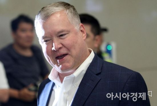대북 실무협상을 총괄하는 스티븐 비건 미국 국무부 대북특별대표가 지난 6월 27일 오후 인천국제공항을 통해 입국하고 있다.