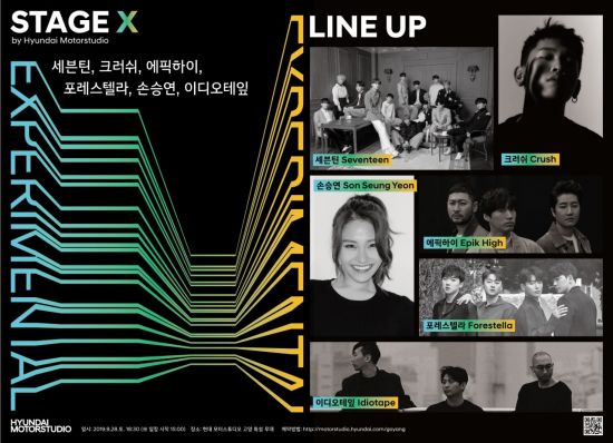 현대차는 오는 28일 경기도 일산에 위치한 ‘현대 모터스튜디오 고양’ 야외 특설 공연장에서 대규모 뮤직 페스티벌 ‘스테이지 X(STAGE X)’를 개최한다고 11일 밝혔다. 스테이지 X는 총 길이 108m, 높이 12m의 초대형 서라운드 스크린으로 미지의 세계에 둘러싸인 듯한 실험적인 무대를 구현할 예정이다. 공연은 세븐틴, 크러쉬, 에픽하이, 포레스텔라, 손승연, 이디오테잎 등의 라인업으로 꾸려진다.