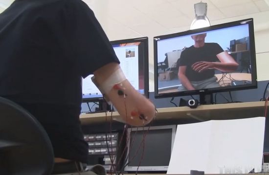 팔이 절단된 환자가 비디오게임을 통해 환상통을 치료하고 있는 모습. [사진=유튜브 화면캡처]