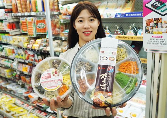 이번에 출시한 ‘장군비빔밥(5000원)’은 내용물 중량이 700g으로 일반 도시락(410g) 대비 1.7배이며, 용기 사이즈도 편의점 도시락 중 역대 최고(지름 27cm, 위 사진 속 일반 비빔밥 도시락은 18cm)를 자랑한다. 성인 두 명이 함께 비벼 ‘양푼이 비빔밥’ 콘셉트로 즐길 수 있고, 평소 편의점 도시락 양이 다소 부족했던 남성들에게는 든든한 한끼가 되기에 충분한 양으로 구성됐다.