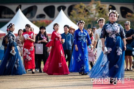 20일 서울 중구 서울광장에서 열린 '제7회 서울-중국의날'에서 중국인 참가자들이 치파오 패션쇼를 선보이고 있다./강진형 기자aymsdream@