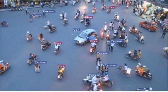 인공지능 딥 러닝 기술을 적용해 차량과 바이크, 사람을 구분하는 화면 [인천경제청 제공]