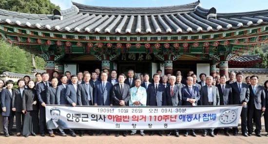 [아시아경제 호남취재본부 정일권 기자] 전남 장흥군은 26일 해동사에서 ‘안중근 의사 하얼빈 의거 110주년’을 기념하는 참배 행사가 열렸다고 밝혔다.