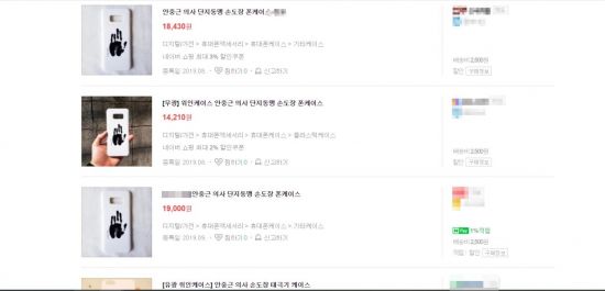 각종 온라인 쇼핑몰에는 안 의사의 손도장이 새겨진 스마트폰 케이스와 의류 등이 판매된다. 스마트폰 케이스는 1만~2만원 사이에서 판매되고 있고 의류의 경우 티셔츠, 스카프, 모자 등 다양한 형태의 상품이 출시돼 있다.