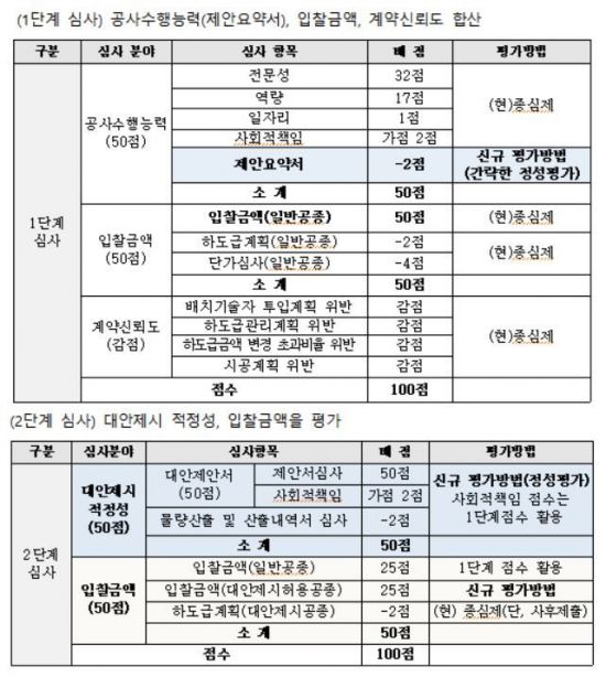 대안제시형 낙찰제 심사절차 및 항목 구성표. 조달청 제공